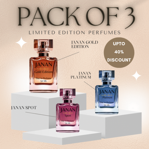 In the world of luxurious fragrances, the Premium Janan Perfume Collection by HAWAV stands out with its exquisite blend of artistry and allure. This pack of three offers a unique olfactory experience, featuring the captivating scents of Janan Oud, Janan Gold Edition, and Janan Platinum.